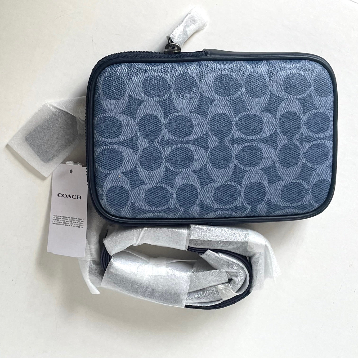 Coach CW364 Aden Crossbody Shoulder Bag Blue Leather Signature Canvas OrgPkg