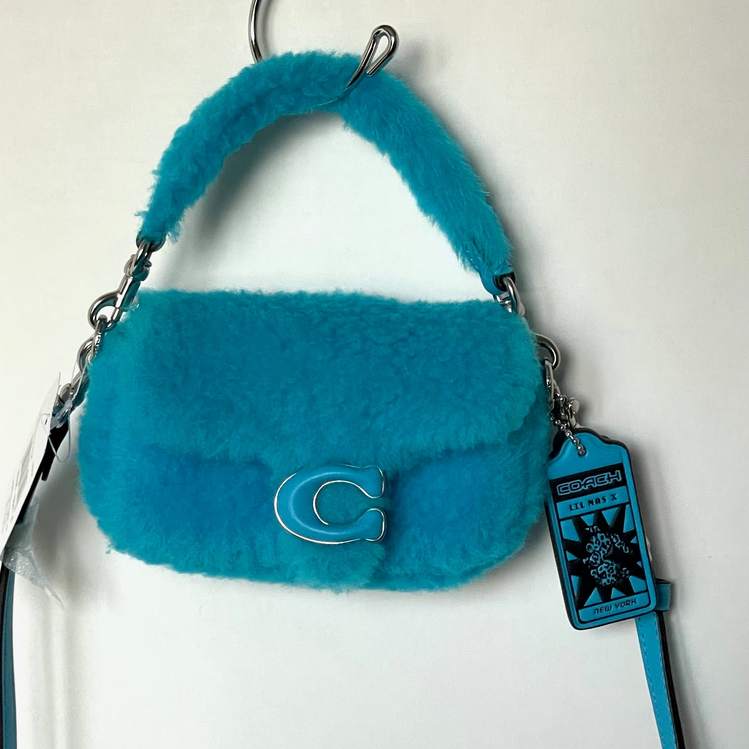Presenting the Lil Nas X Drop, an edit designed by Coach and curated by Coach Ambassador Lil Nas X, celebrating his unique and expressive approach to style. It's a scaled down version of the customer-favorite Tabby bag with all of the same details as the original. Finished with leather wrapped Signature hardware for an iconic touch, it’s crafted of supersoft plush dyed short-haired shearling. The versatile design features two detachable straps to carry by hand or wear crossbody and a dual gusset interior to organize cash, cards, ear buds, and keys. (Great things come in small packages.)