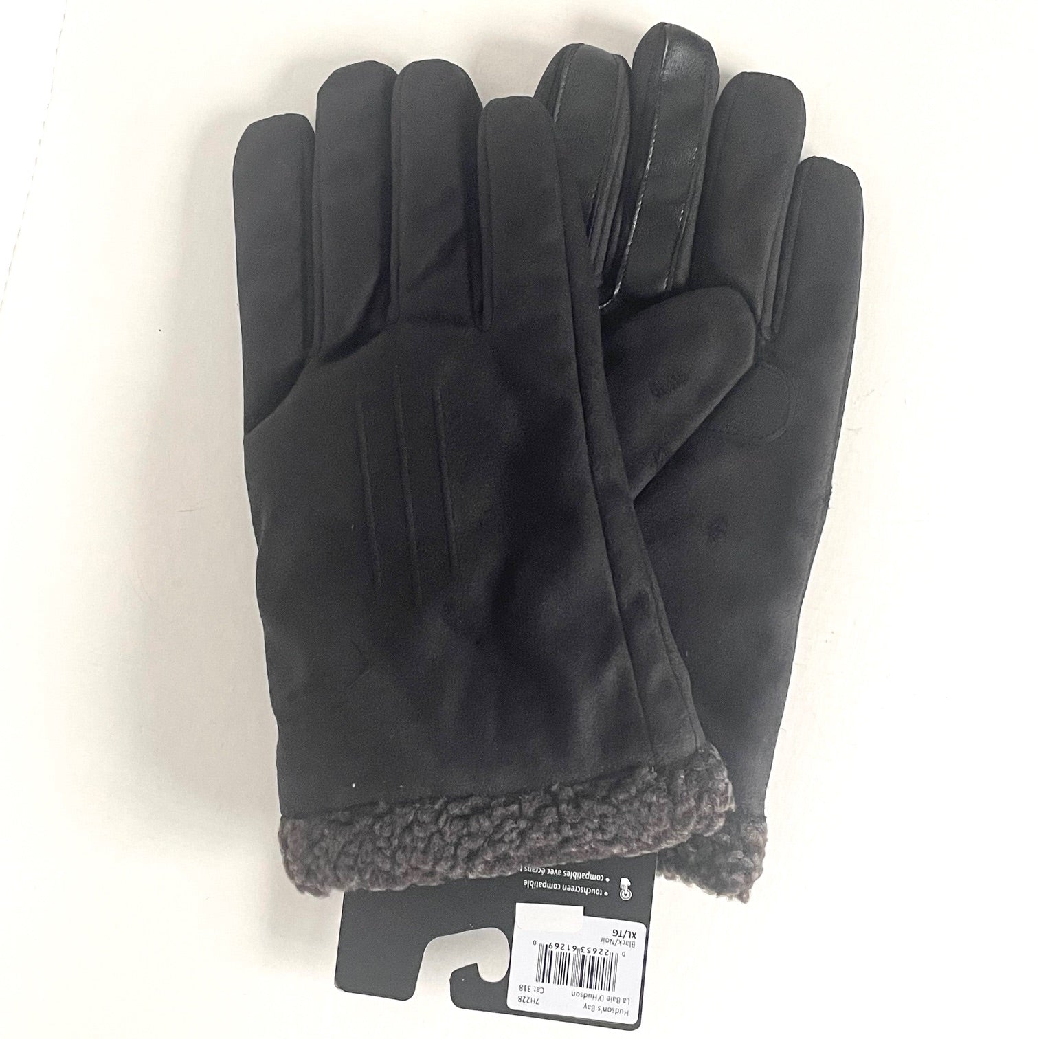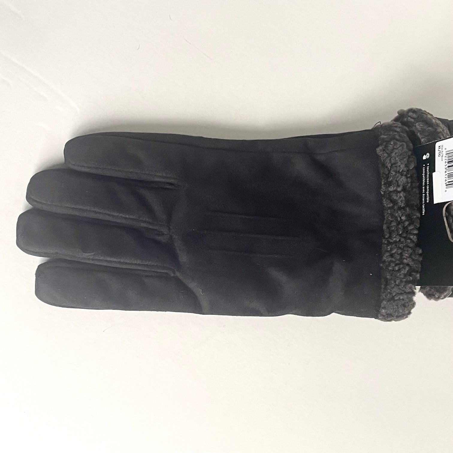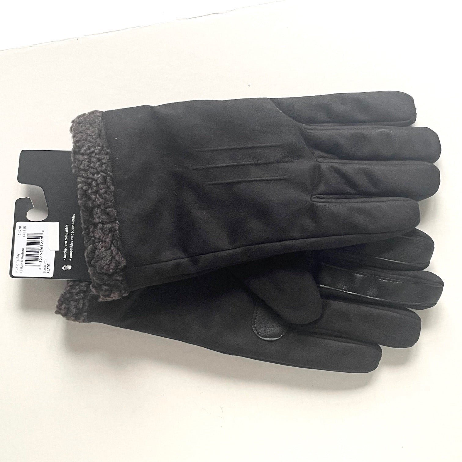 Isotoner Men’s SmarTouch Microsuede Faux Shearling Black Tech Winter Gloves