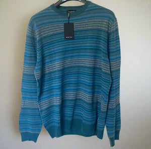 Bugatchi Wool Cashmere Sweater Men’s M Blue Striped Crewneck Knit Italy