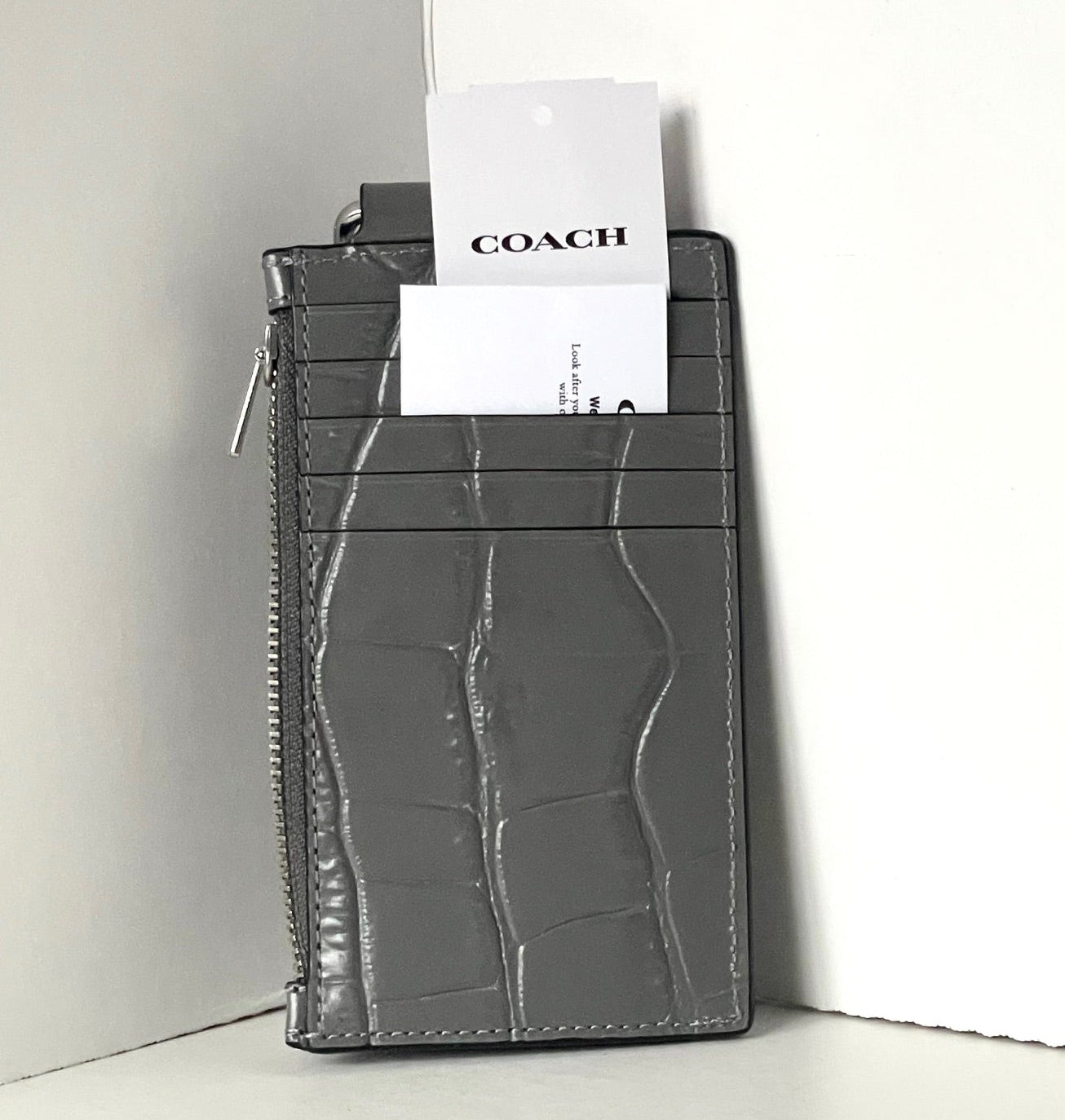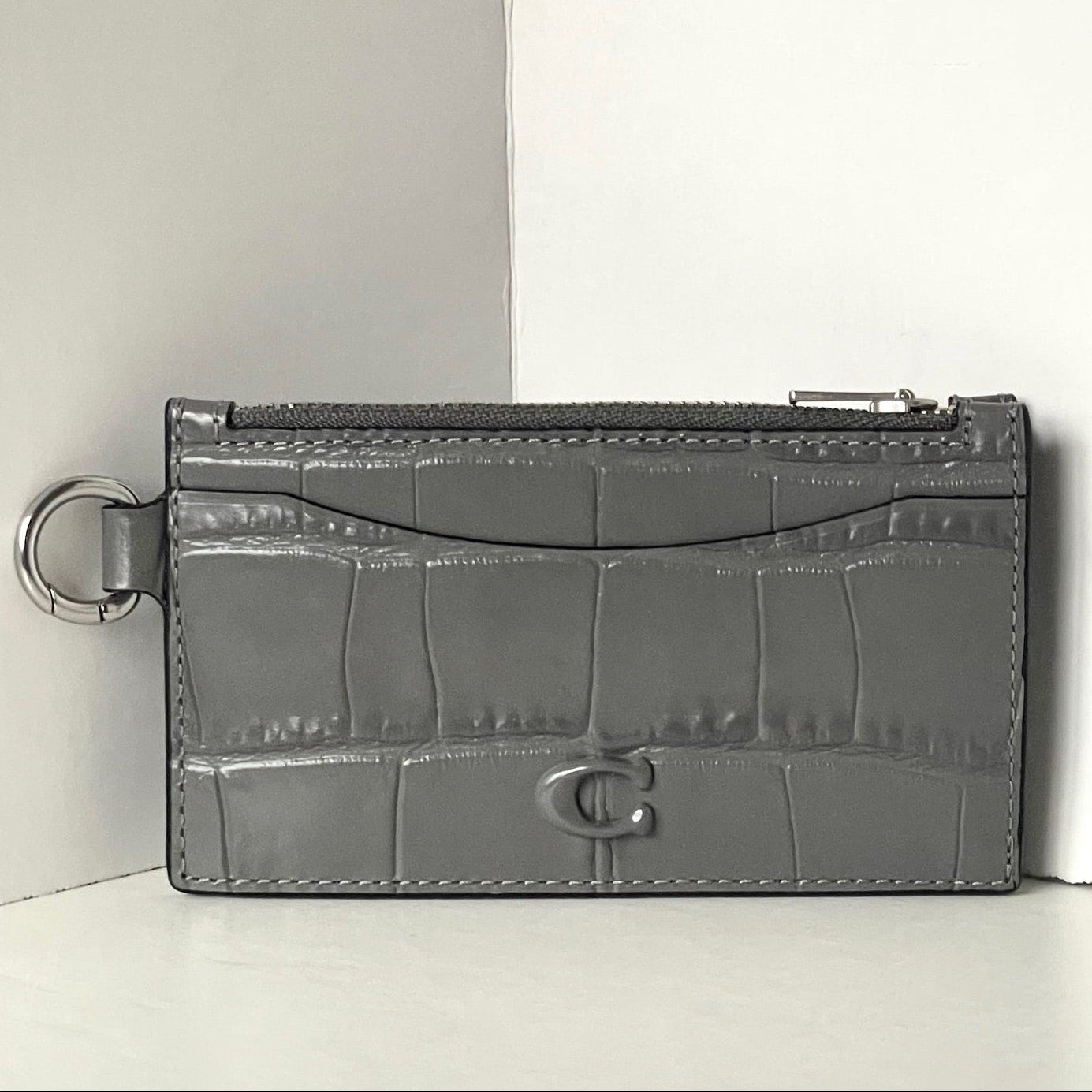 Crafted of distinctive crocodile-embossed leather detailed with our tonal Signature hardware, this case unzips to reveal an expandable pocket. A slim design that slips easily into pockets, it holds five cards and other small essentials. Clip it to a bag or secure to a set of keys with the attached D-ring.