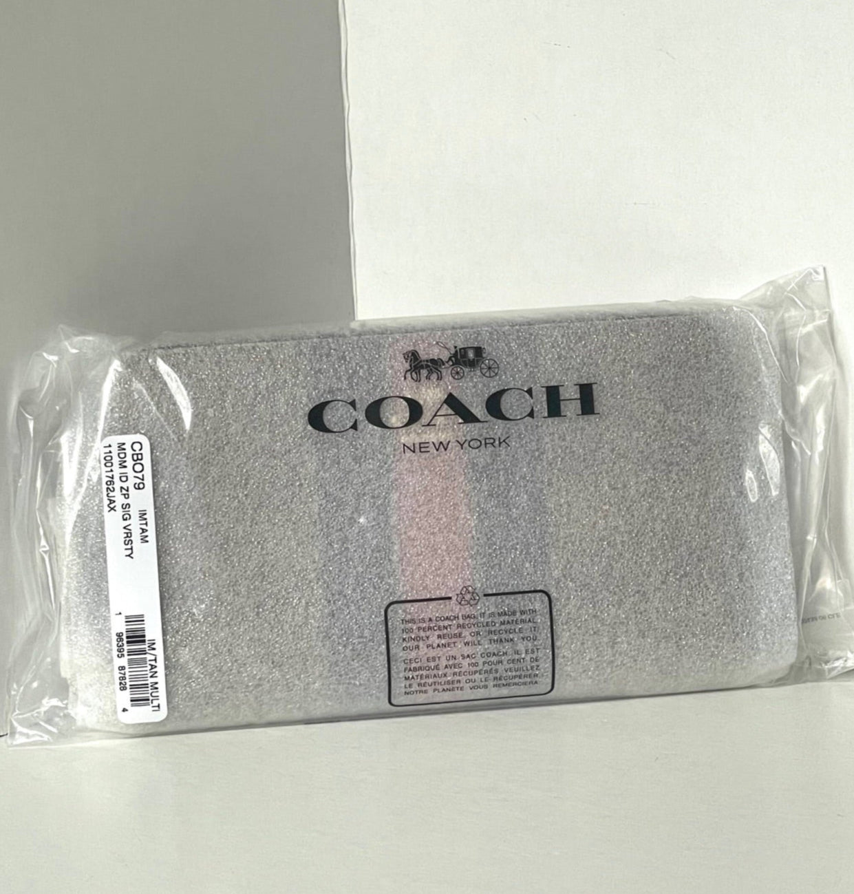Coach medium zip wallet in signature coated canvas with varsity stripe detailing. Compact yet functional, this wallet is perfect for everyday use.
