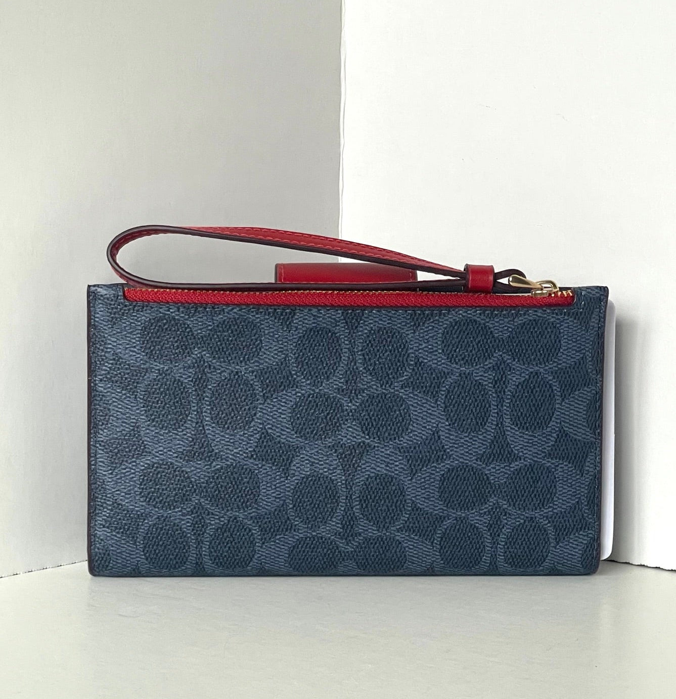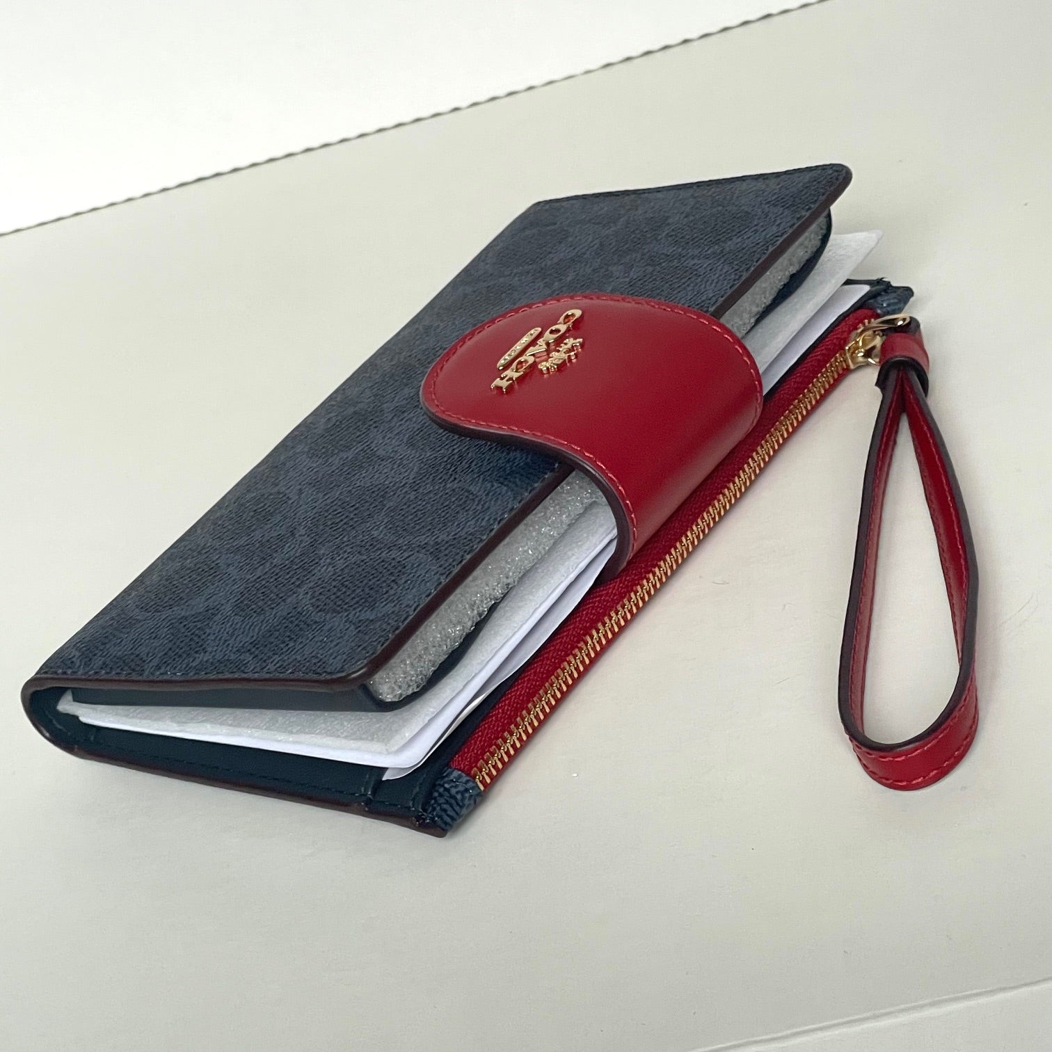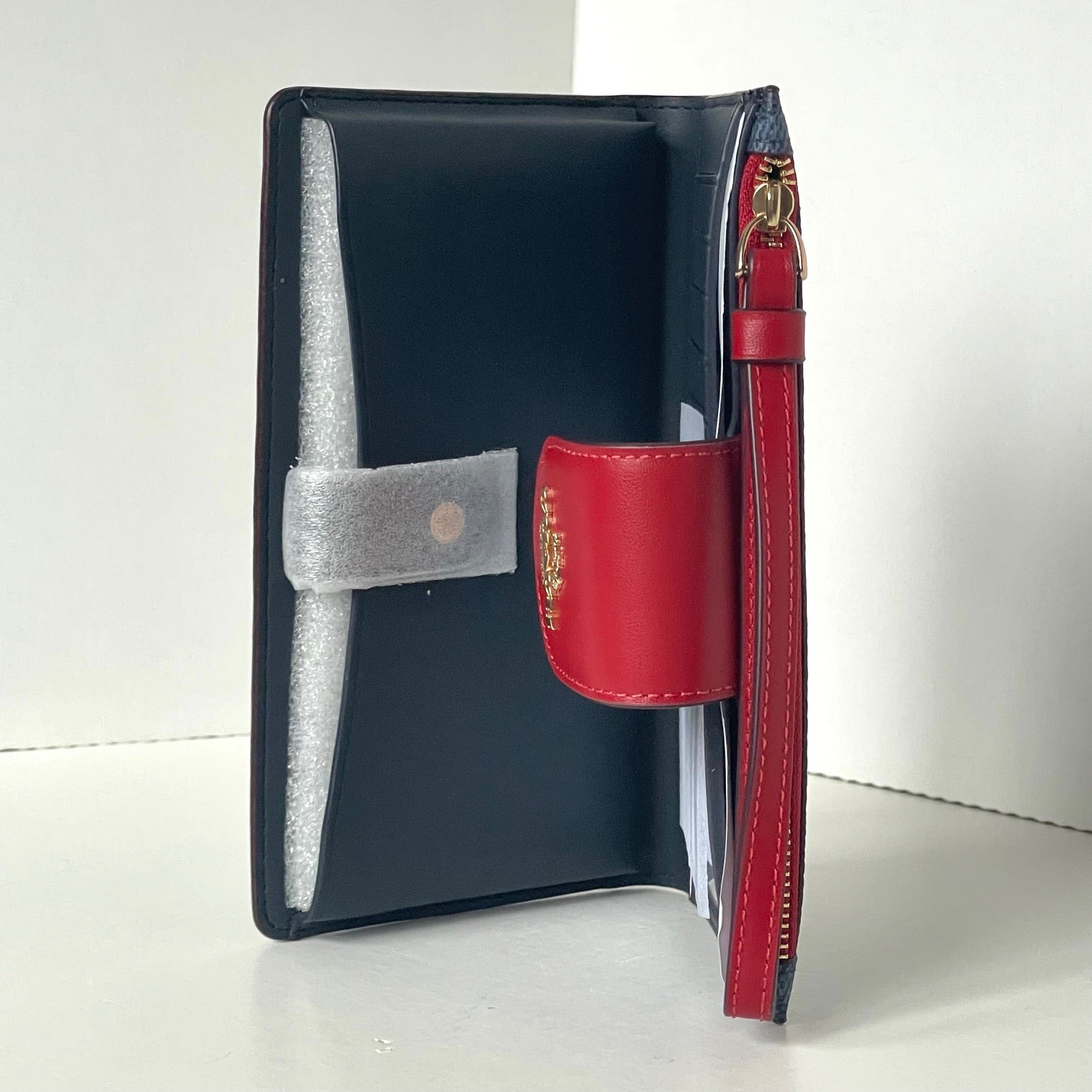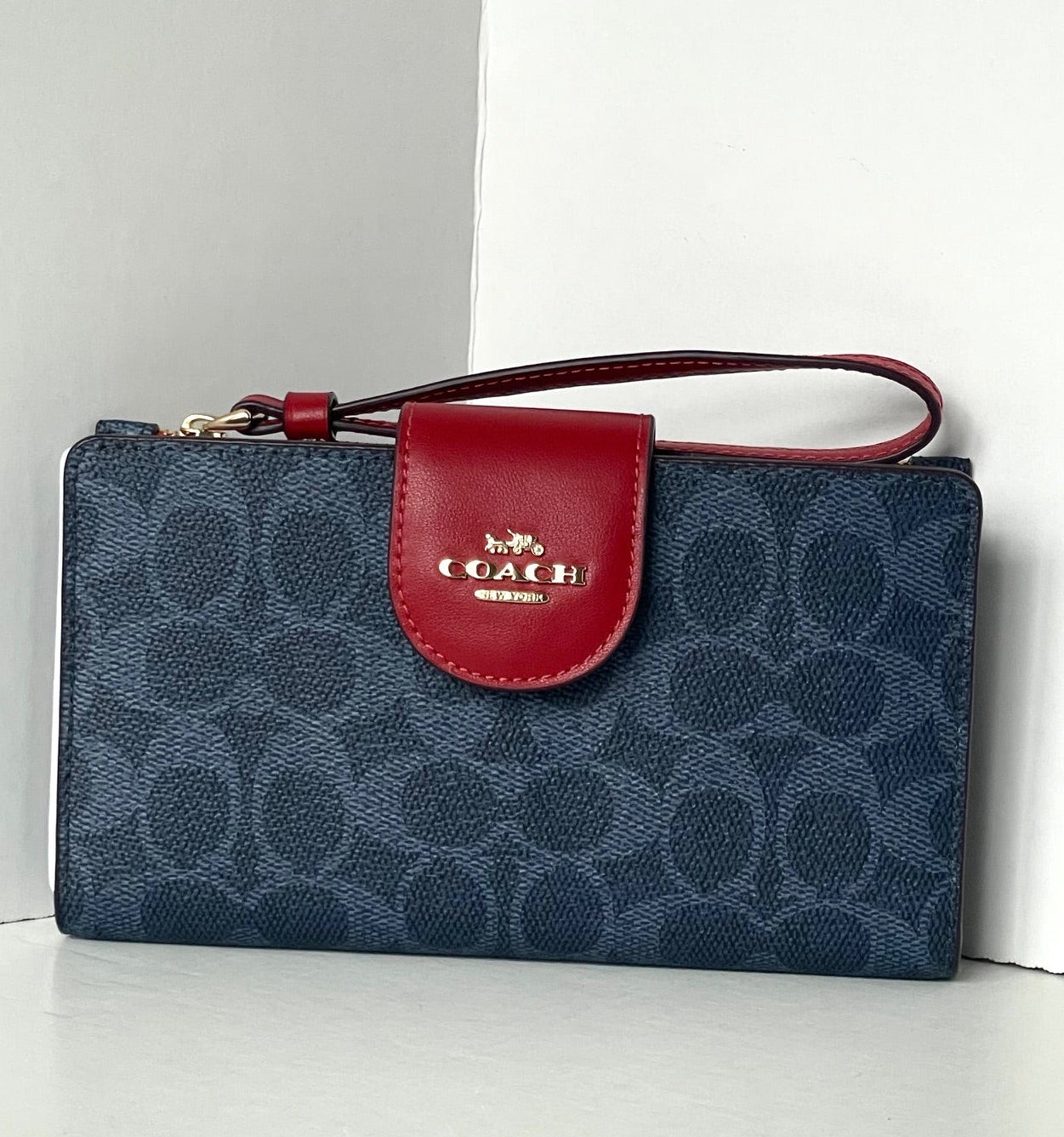 Coach Phone Tech ID Wallet Wristlet CW780 Blue Red Signature Canvas Clutch Bag