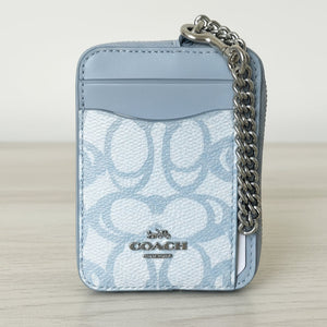 Coach Zip Card Case CBL78 Blue Sketch Signature Canvas ID Wallet ORGPKG