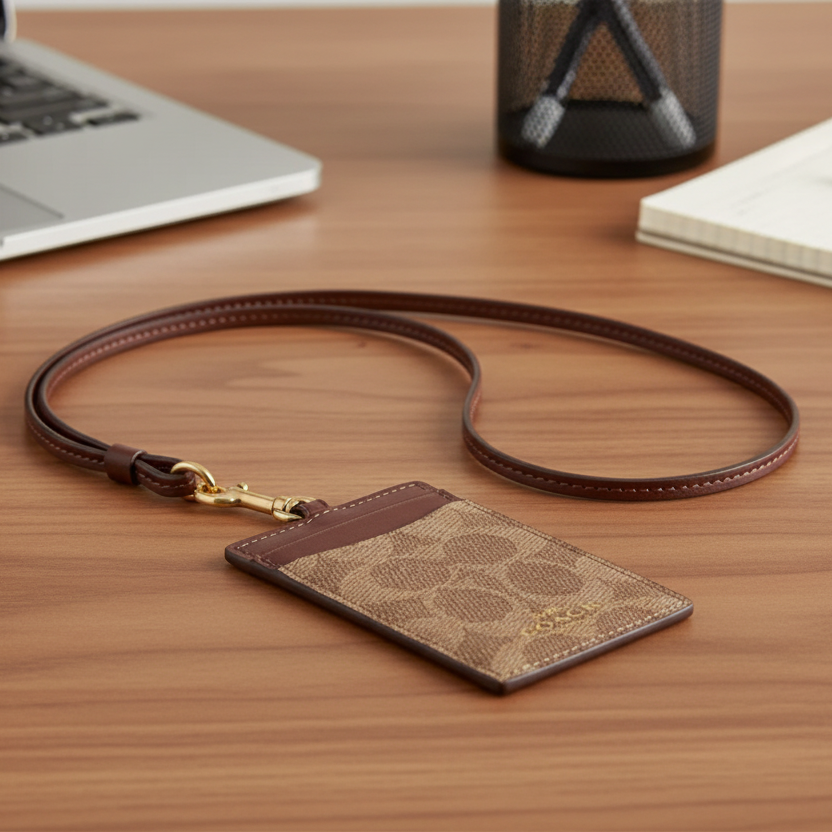 Keep your I.D. safe and stylish in our Morgan lanyard, crafted from scratch-resistant Saffiano leather. Go Hands free - No need to carry a wallet or purse.