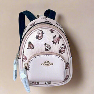 Coach Mini Court Floral Backpack Bag Charm CAA68 Pink Rosette Keychain Purse