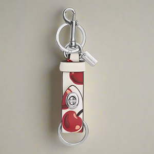 Coach Trigger Snap Cherry Bag Charm Leather Key Ring White Red CZ088 ORGPKG