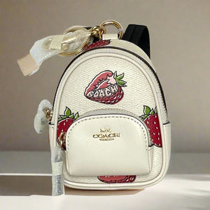 Coach Mini Court Strawberry Backpack Bag Charm CAO93 White Keychain ORGPKG