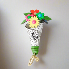 - Colorful floral bouquest wrapped in crossword puzzle.