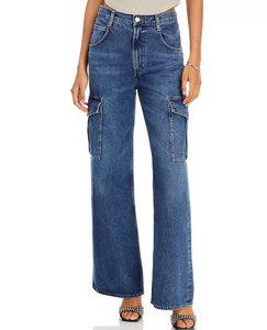 Agolde Minka Cargo High Rise Wide Leg Jeans Womens Blue Denim Zip Path