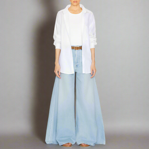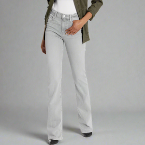 Flared jeans, also called bell bottoms in the extreme, is a style of jeans that become wider from the knees down, forming a sort of “bell-like” shape of the pant leg. Flared jeans can have anywhere from a moderate flare to an exaggerated flare.