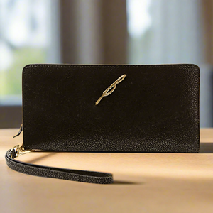 Brian Atwood Slim Zip Wallet Wristlet Womens Black Large Leather Accordian Belle