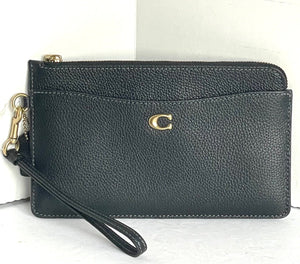 Coach L Zip Wristlet Wallet C8434 Black Leather Zip Slim Pebbled Card Slots
