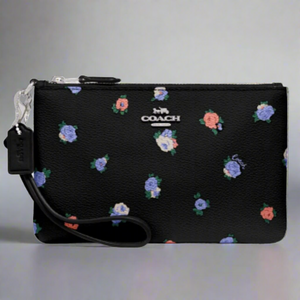 Coach Rosebud Floral Wristlet Wallet Womens Canvas Leather Small Black 76978