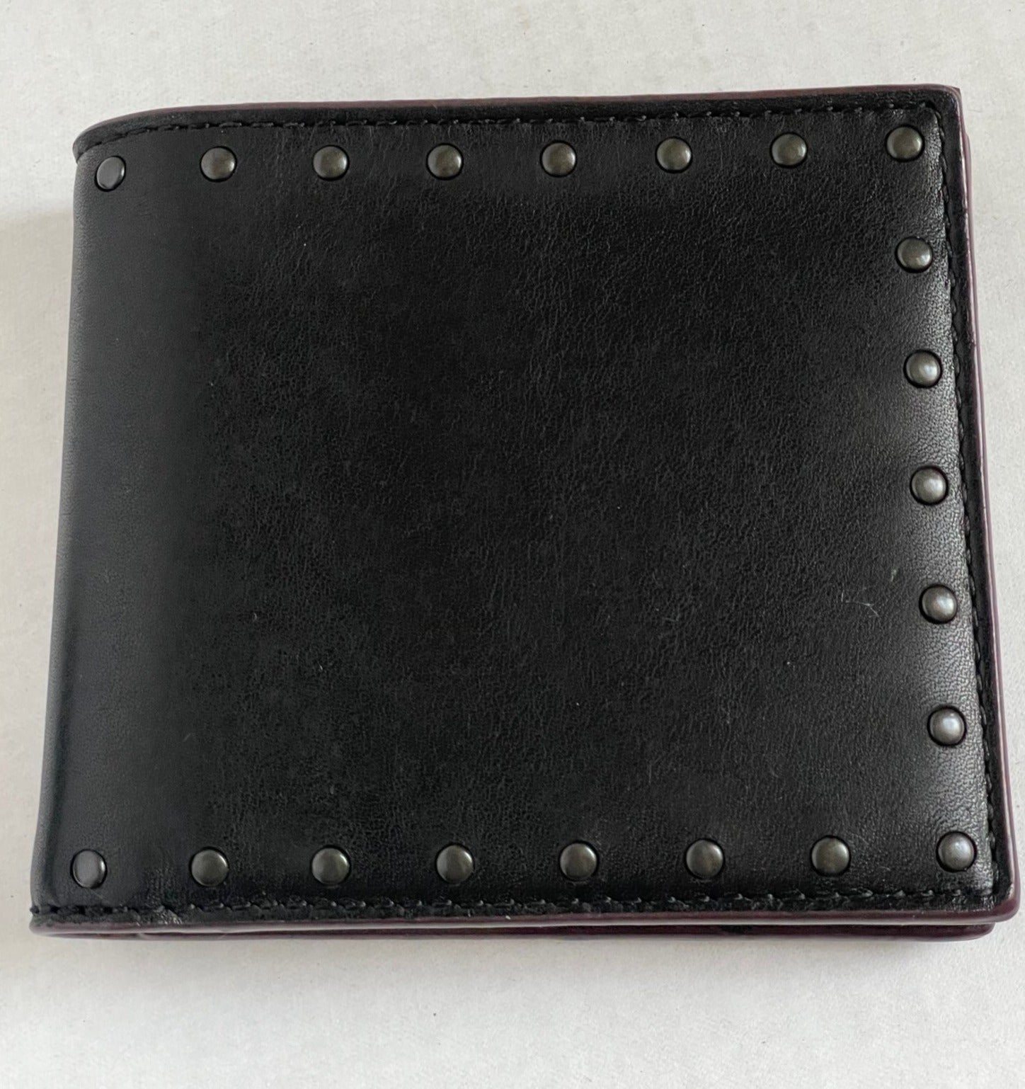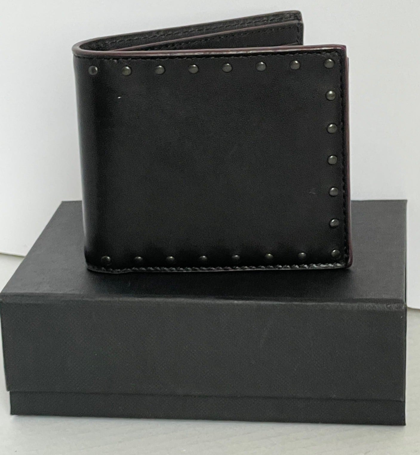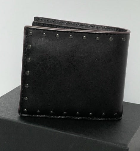 Crafted in sport leather and finished with polished rivets, this traditional billfold slips easily into back pockets. It’s designed with eight credit card slots and two full-length bill compartments.