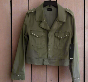 Hudson Women's Military Silver Studded Cotton Cropped Jacket, Khaki - Medium