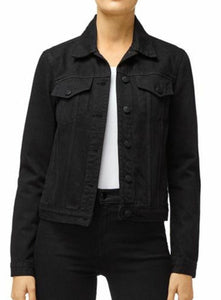 J Brand Denim Jacket Womens Small Black Cropped Slim Fit Cotton Rigid Button