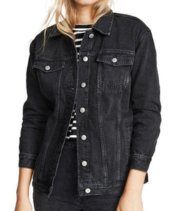Madewell Denim Jacket Womens Black Oversized Trucker Cotton, Lunar Wash