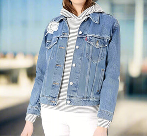 Levis Ex-Boyfriend Women's Distressed Destroy Retro Denim Trucker Jean Jacket
