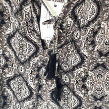 Joie Women's Calla B Silk V-Neck Paisley Print Boho Tassel Tie Black Ivory Blouse - S - Luxe Fashion Finds