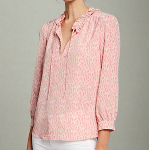 Joie Shirt Evangelena Ruffle Neck Blouse Womens XS Small Pink Long-Sleeve