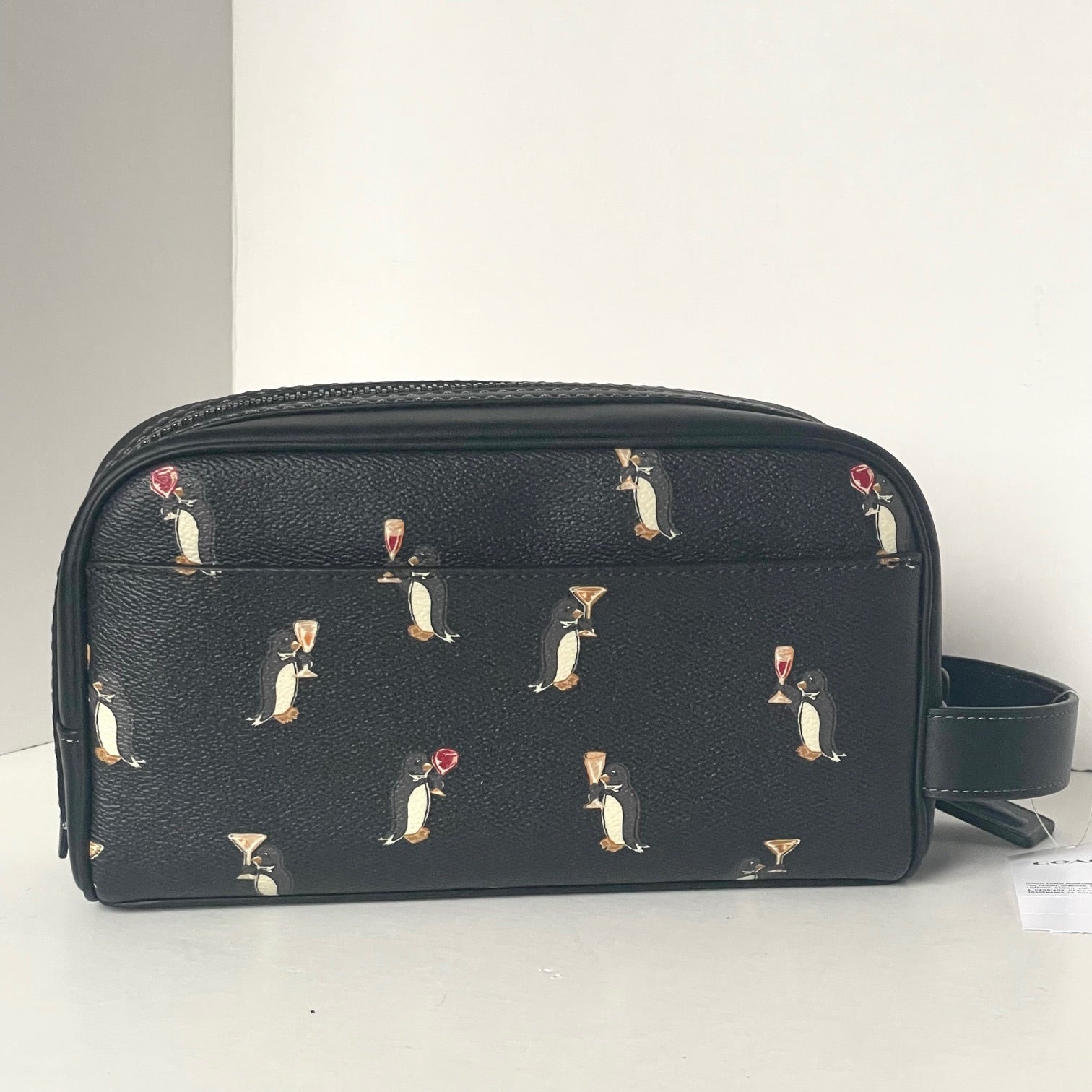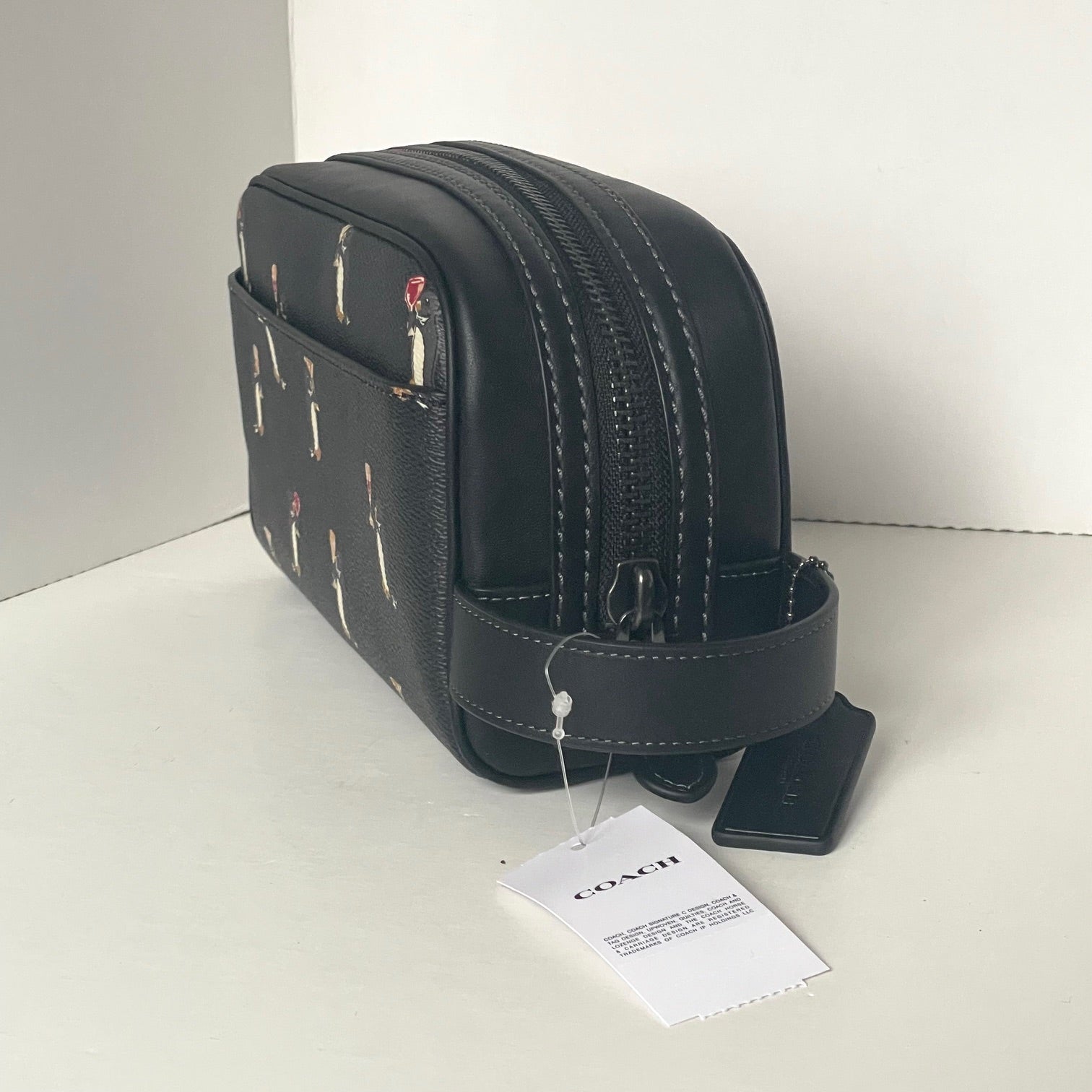 This Small Travel Kit is crafted of Signature Coated Canvas and Smooth Calf Leather in a distinct camo print. This men's designer toiletry bag is functional and spacious enough to fit all your grooming essentials, making it the perfect men's travel kit for your next adventure. It features a convenient zip closure and interior pockets to keep everything in place.
