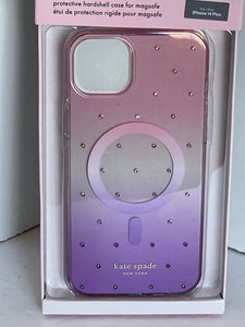 Kate Spade iPhone 14 PLUS Case Pink Ombre Pin Dot Hard Shell Box 6.7in