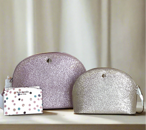 Kate Spade Rose Gold Glitter Crossbody Set Wallet Pouch Makeup Card Case 3PC