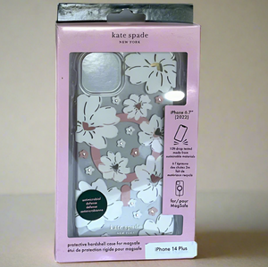 Kate Spade iPhone 14 Plus Case White Floral Peony MagSafe Hard Shell 6.7" Boxed