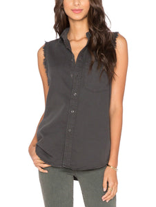 Mother Shirt Womens Small Black Sleeveless Fray Foxy Cotton Linen Button Up