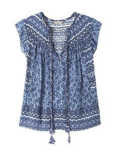Rebecca Taylor Women's Tangier Silk Cotton Paisley Sleeveless V-Neck Blue Top