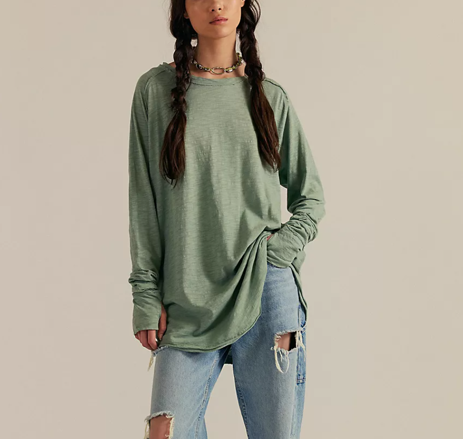 We The Free Aden Slouchy Oversized Slub Cotton Long Sleeve Tee Womens