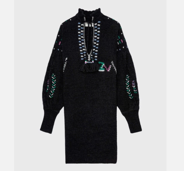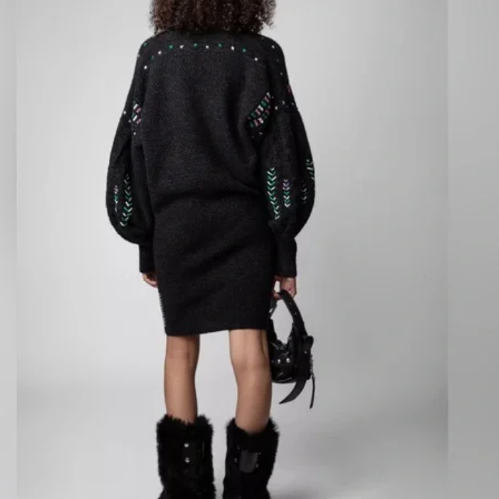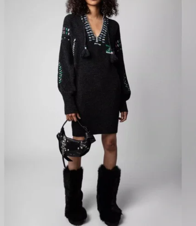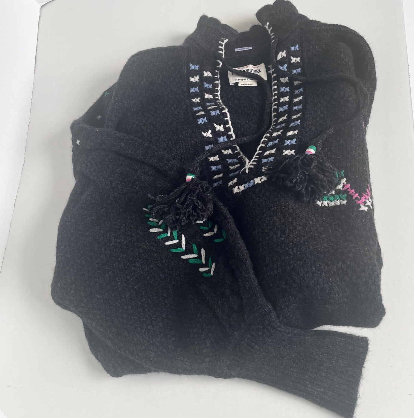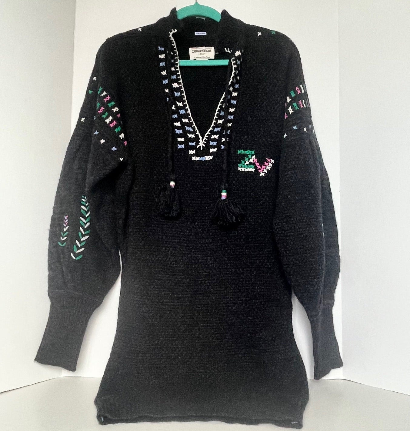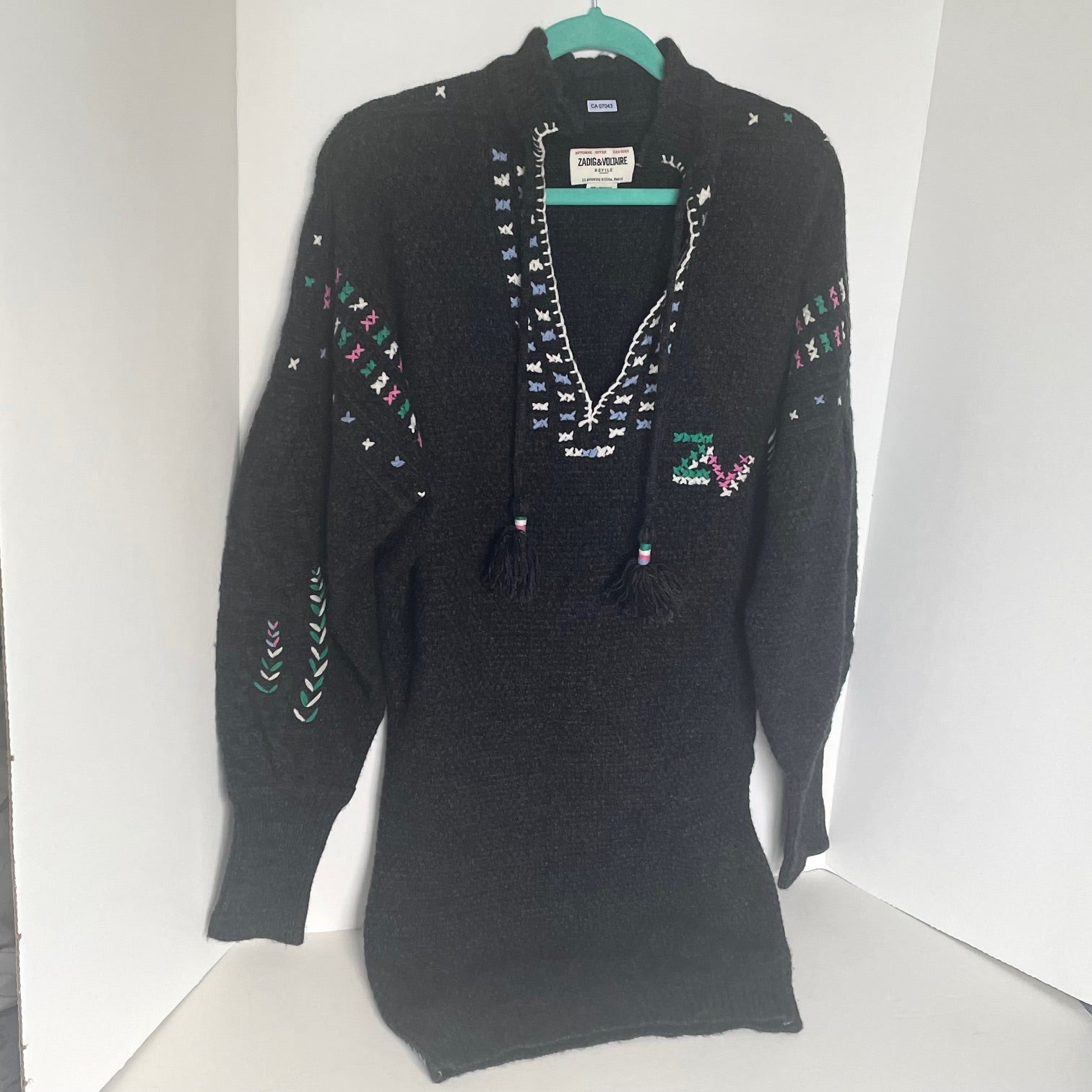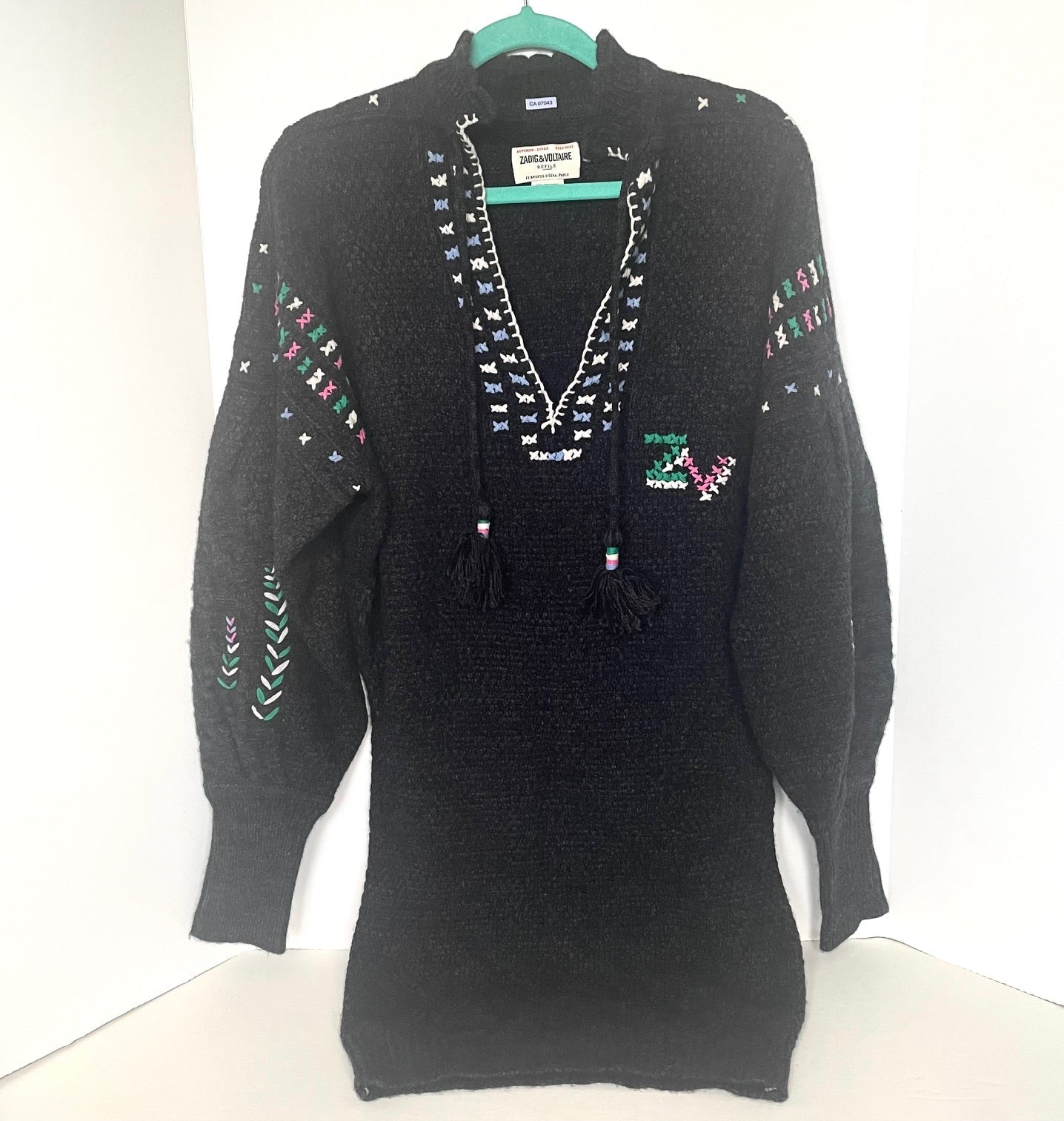 Zadig & Voltaire Alabama Wews sweater mini dress in black cashmere wool blend. Soft knit, luxe feel, long sleeve silhouette. Size Medium. Timeless Parisian style.