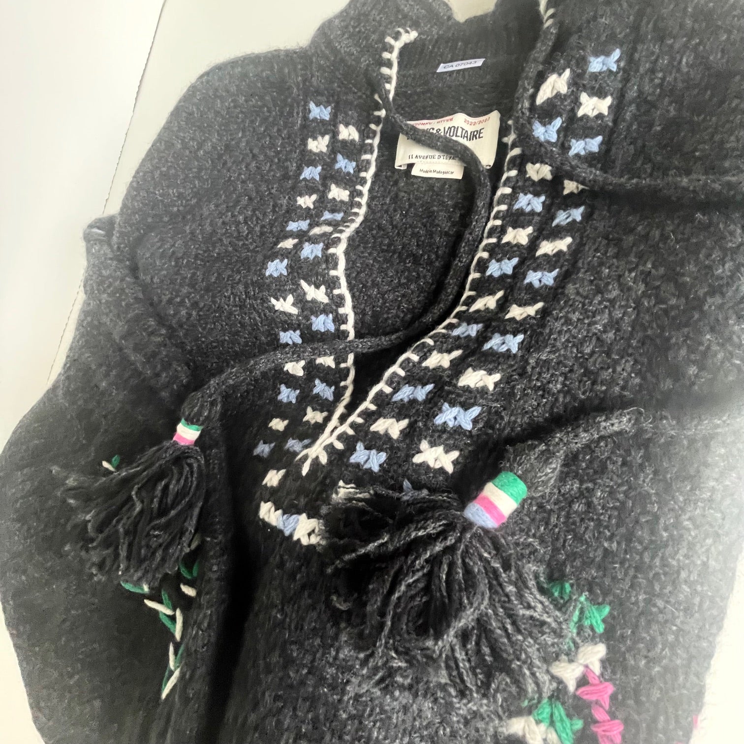 Black fleece garment with Zadig & Voltaire tag on a dark background