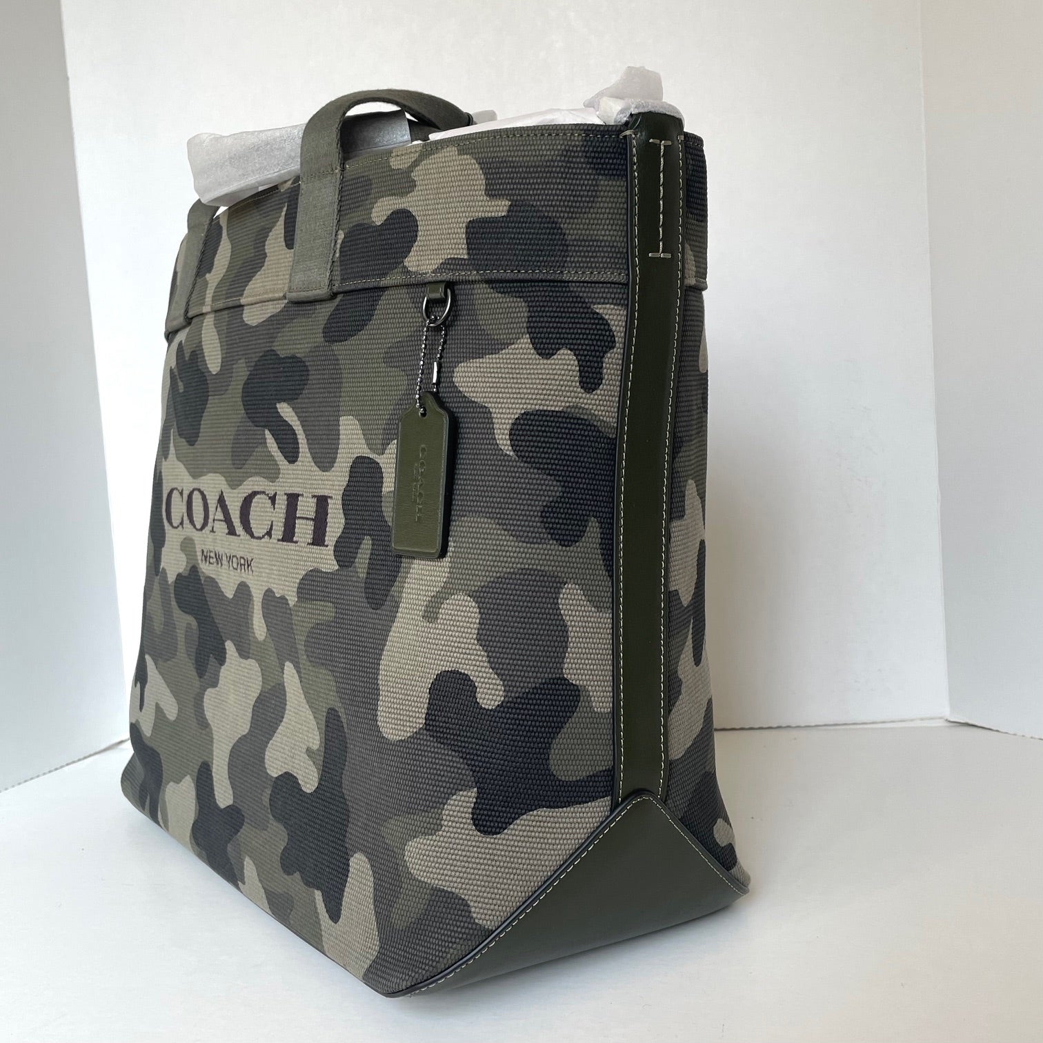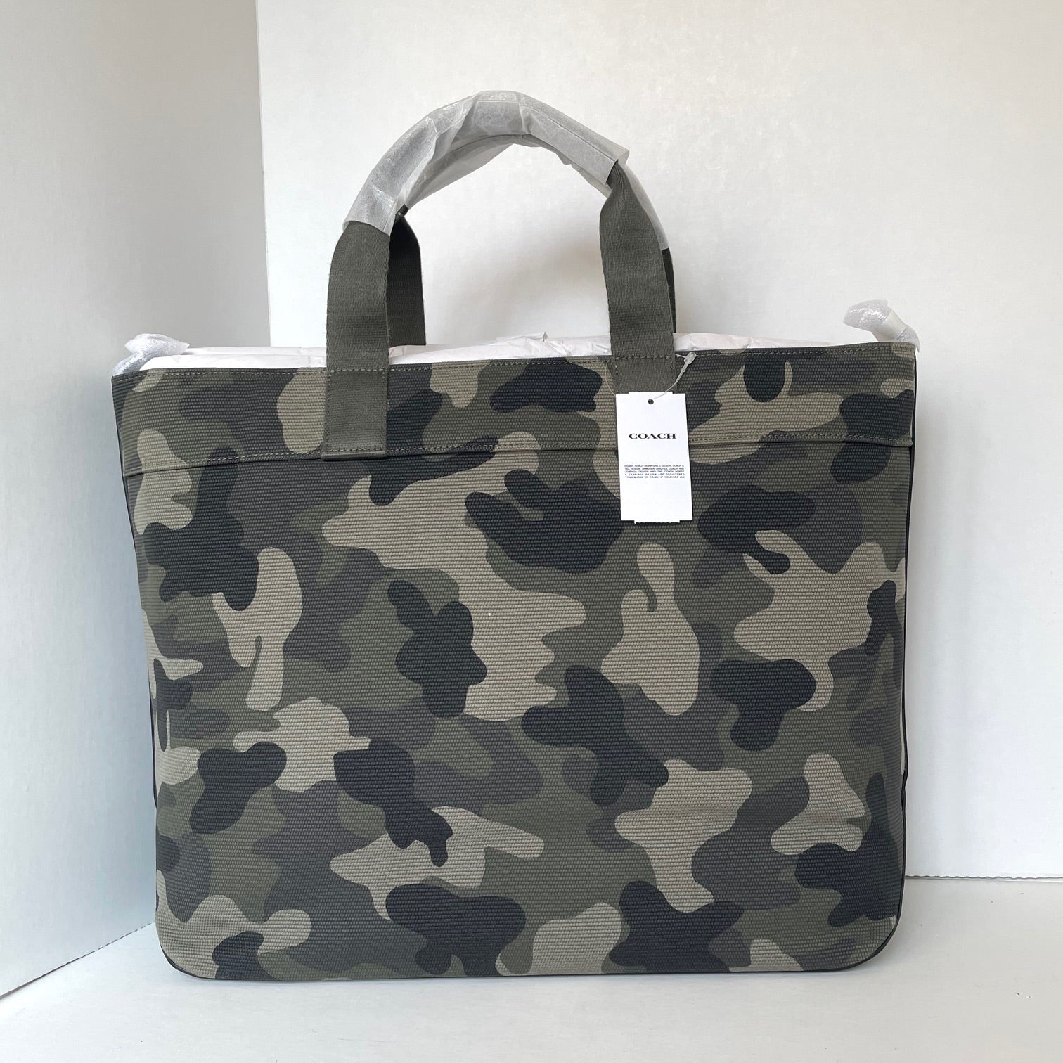 Coach Tote 38 CY805 Large Green Camo Canvas Leather Carryall Shoulder Bag
