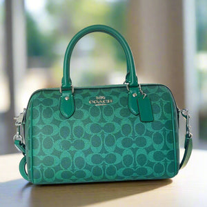Coach Rowan Satchel Bag Medium Signature Canvas Jade CV961 Crossbody Green