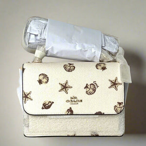 Coach Mini Klare Shell Crossbody Bag CBI18 White Brown Chain Strap ORGPKG