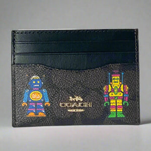 Coach Cosmic Slim Id Card Case Robot Print Brown Signature Canvas CW929