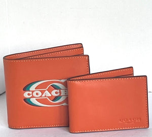 Coach 3 In 1 Wallet Mens Leather Vintage Logo Stamp Bright Orange CH084