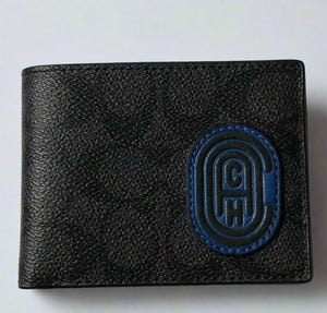 Coach Retro Patch Billfold Slim Wallet Mens Black 69218 Signature Canvas Leather