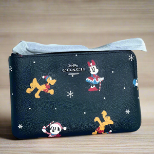 Disney Coach Corner Zip Wristlet Leather Holiday Black Minnie Mickey Daffy CN031