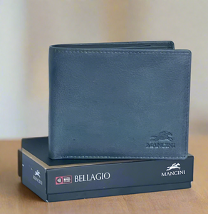 Mancini Wallet RFID Mens Gray Leather Trifold ID Window Billfold Small Boxed