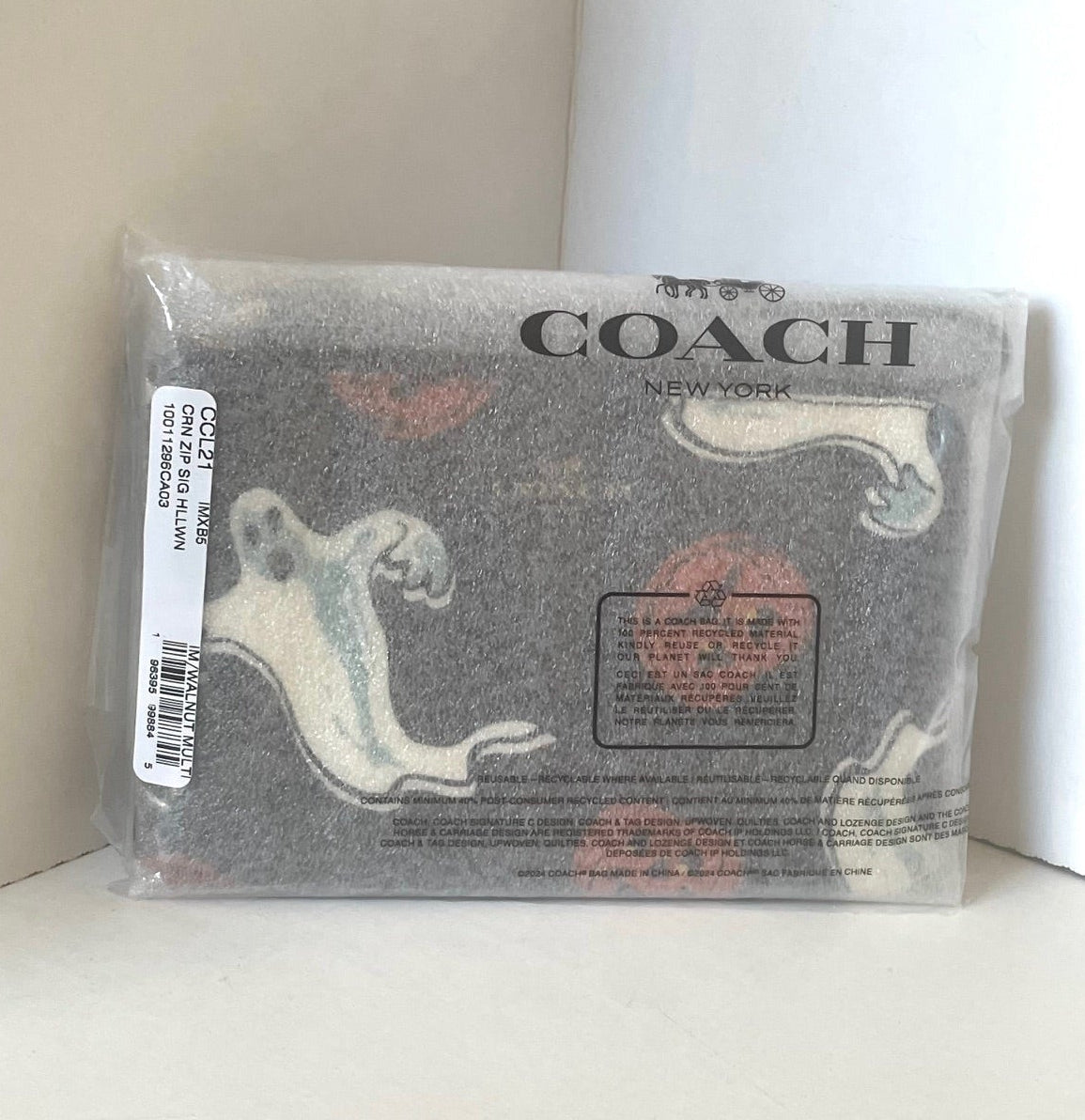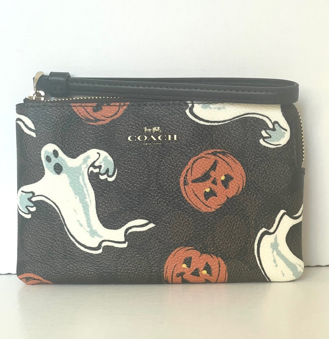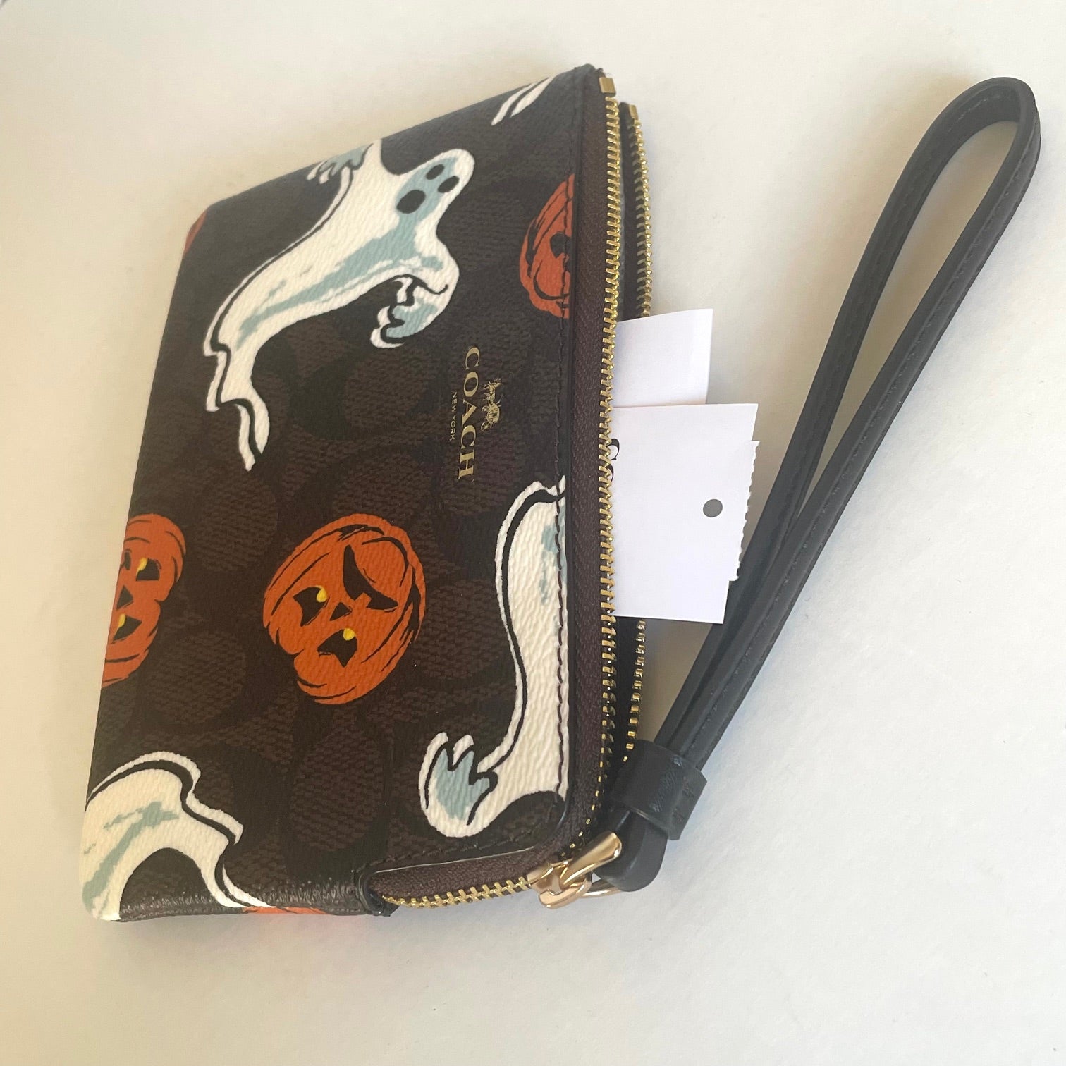 The Corner Zip Wristlet fits all your essentials—cards, cash and even that crumpled receipt you forgot to throw away. Crafted of Signature Coated Canvas and novelty print that's perfect for the spooky season, this Halloween wristlet keeps your items secure.