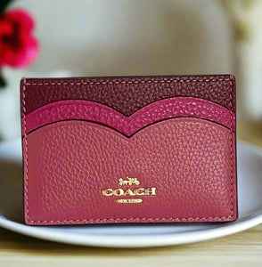 Coach Scalloped Heart Card Case Red Pebbled Leather CU138 Slim Wallet Gold