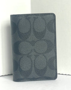 Coach ID Wallet Mens Black Bifold Slim Card Case Signature Canvas CJ753