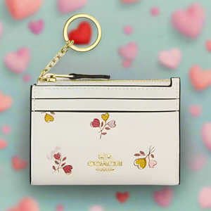 Coach Mini Skinny ID Wallet Womens White Heart Keyring Canvas Leather CW967