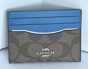 Coach Jacquard Mini Skinny ID Wallet CU988 Blue Keyring Refined Leather
