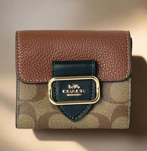 Coach Small Morgan Compact Wallet Womens Brown Signature Canvas Leather