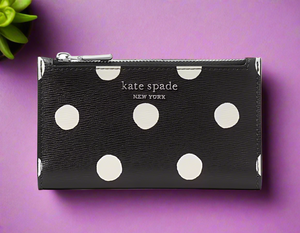 Kate Spade Morgan Slim Bifold Wallet Black Polkadot Small White Gift Box