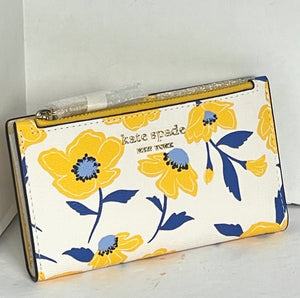 Kate Spade Morgan Sunshine Floral Small Slim Bifold Wallet Cream Yellow Compact